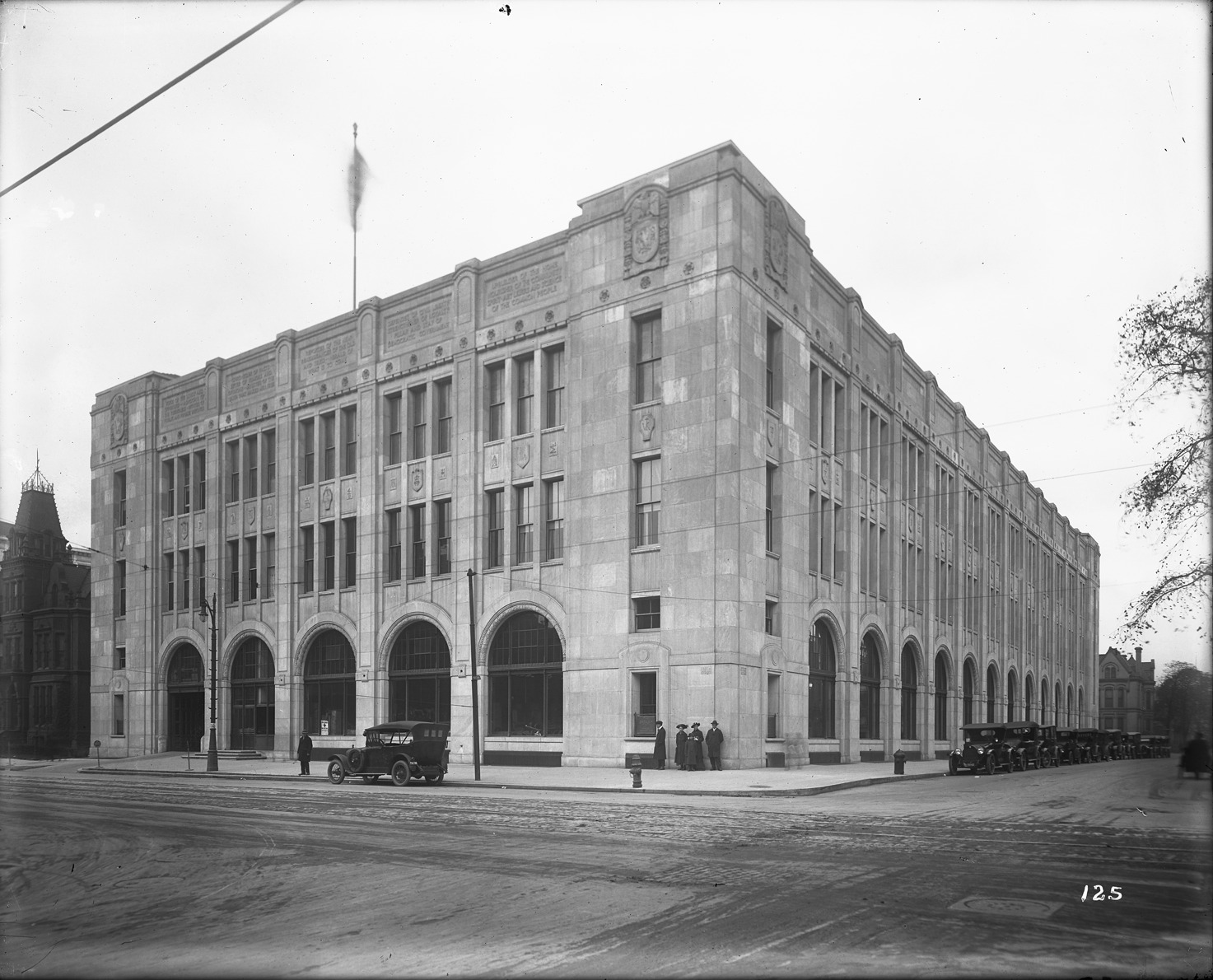 Detroit News building Description: Detroit News building on Fort Street and Second Ave., cars on side street, two men, two women and girl standing at corner. Recorded in glass negative ledger: "D/Newspapers-Detroit News." Details Resource ID: EB02e388 Subject: Detroit news (Detroit, Mich. : 1905) Newspaper buildings--Michigan--Detroit Automobiles--Michigan--Detroit Glass negatives Date Issued: Unknown year Format: 1 negative : glass ; 8 x 10 in. Member of: Burton Historical Collection Negative Number: BHC glass neg. no. 1901 Rights: Physical rights are retained by DPL. Copyright is retained in accordance with U.S. copyright laws.