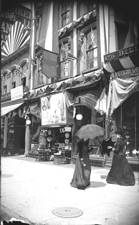 Favorite this☆ Women strolling on sidewalk during G.A.R. 25th convention Description: Two women on sidewalk, storefronts decorated for G.A.R. convention. Recorded in glass negative ledger: "LD/Conventions-G.A.R.-25th nat'l. encampment, Detroit, 1891." Details Resource ID: EB02e409 Subject: Grand Army of the Republic. National Encampment Commercial buildings--Michigan--Detroit Glass negatives Date Issued: 1891 Format: 1 negative : glass ; 5 x 3 in. Member of: Burton Historical Collection Negative Number: BHC glass neg. no. 1921 Rights: Physical rights are retained by DPL. Copyright is retained in accordance with U.S. copyright laws.