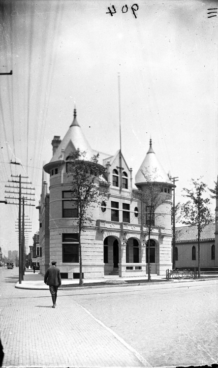 Favorite this☆ Police station Description: Three-story stone and brick building with two towers identified in ledger as a police station. Recorded in glass negative ledger: "D/Police dept.-Stations." Details Resource ID: EB02e657 Subject: Detroit (Mich.). Police Dept. Municipal buildings--Michigan--Detroit Glass negatives Date Issued: Unknown year Format: 1 negative : glass ; 5 x 3 in. Member of: Burton Historical Collection Negative Number: BHC glass neg. no. 2274 Rights: Physical rights are retained by DPL. Copyright is retained in accordance with U.S. copyright laws.