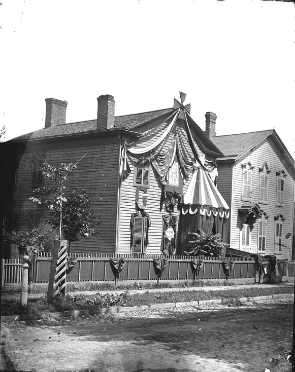 Favorite this☆ U.S. Grant house on Fort Street Description: View of the front and one side of U.S. Grant's former house on Fort Street covered in patriotic bunting, with wooden fence and trees in front. Recorded in glass negative ledger: "LD/Historic houses-Grant, U.S." Details Resource ID: EB02e757 Subject: Grant, Ulysses S. (Ulysses Simpson), 1822-1885--Homes and haunts--Michigan--Detroit Wooden-frame houses--Michigan--Detroit Historic buildings--Michigan--Detroit Glass negatives Date Issued: Unknown year Format: 1 negative : glass ; 5 x 4 in. Member of: Burton Historical Collection Negative Number: BHC glass neg. no. 2391 Rights: Physical rights are retained by DPL. Copyright is retained in accordance with U.S. copyright laws.