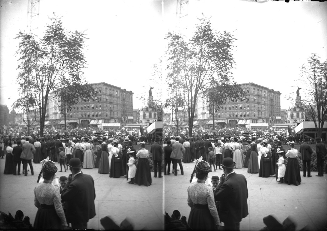 Favorite this☆ Crowd of people gather at Campus Martius Description: Large crowd of people gathers at Campus Martius with buildings in background and bleachers and Soldiers' and Sailors' Monument on right. Glass negative is stereo image. Recorded in glass negative ledger: "D/Streets-Woodward & Campus Martius." Details Resource ID: EB02e929 Subject: Crowds--Michigan--Detroit Plazas--Michigan--Detroit Soldiers' monuments--Michigan--Detroit Glass negatives Date Issued: Unknown year Format: 1 negative : glass ; 5 x 7 in. Member of: Burton Historical Collection Negative Number: BHC glass neg. no. 2614 Rights: Physical rights are retained by DPL. Copyright is retained in accordance with U.S. copyright laws.