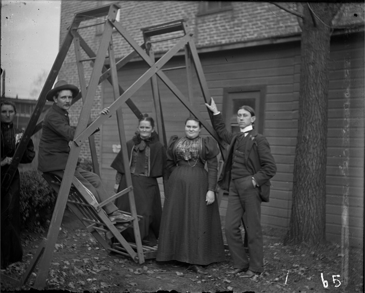 Favorite this☆ Men and women pose by swing Description: Three women and two men pose by swing near house. Recorded in glass negative ledger: "D/Costume-Couples." Details Resource ID: EB02e954 Subject: Men--Michigan--Detroit Women--Michigan--Detroit Swings--Michigan--Detroit Glass negatives Date Issued: Unknown year Format: 1 transparency : glass ; 4 x 5 in. Member of: Burton Historical Collection Negative Number: BHC glass neg. no. 2639 Rights: Physical rights are retained by DPL. Copyright is retained in accordance with U.S. copyright laws.