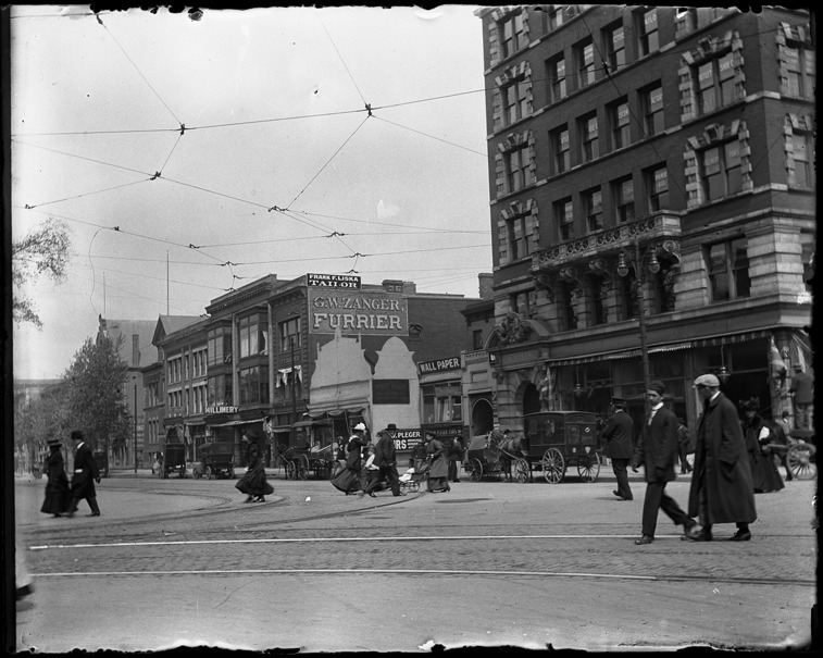 Favorite this☆ Breitmeyer Building on Broadway Description: Pedestrians on Broadway near the Breitmeyer Building and other businesses including The White House and G.W. Zanger, furrier. Recorded in glass negative ledger: "LD/Streets-Broadway, April 23, 1910, 10:05 am." Details Resource ID: EB02f018 Subject: Business establishments--Michigan--Detroit Streets--Michigan--Detroit Fur trade--Michigan--Detroit Glass negatives Date Issued: 1910-04-23 Format: 1 negative : glass ; 4 x 5 in. Member of: Burton Historical Collection Negative Number: BHC glass neg. no. 2740 Rights: Physical rights are retained by DPL. Copyright is retained in accordance with U.S. copyright laws.