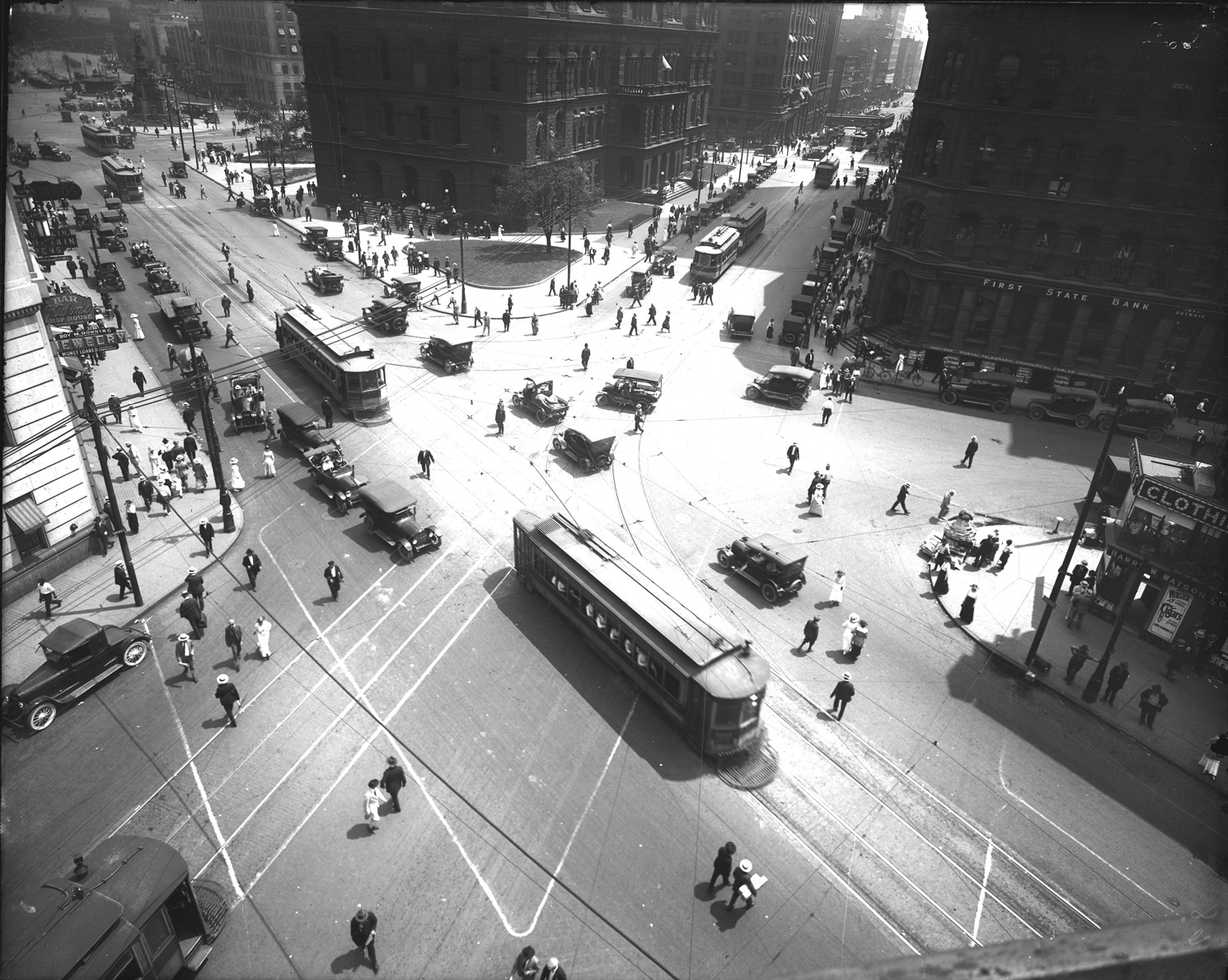 Favorite this☆ Michigan Avenue and Griswold Street Description: Busy afternoon at Michigan Avenue and Griswold with pedestrians, automobiles and streetcars. Recorded in glass negative ledger: "D/Streets-Michigan & Griswold." Details Resource ID: EB02f151 Subject: Streets--Michigan--Detroit Commercial buildings--Michigan--Detroit Trolley cars--Michigan--Detroit Automobiles--Michigan--Detroit Glass negatives Date Issued: Unknown year Format: 1 negative : glass ; 8 x 10 in. Member of: Burton Historical Collection Negative Number: BHC glass neg. no. 2877 Rights: Physical rights are retained by DPL. Copyright is retained in accordance with U.S. copyright laws.