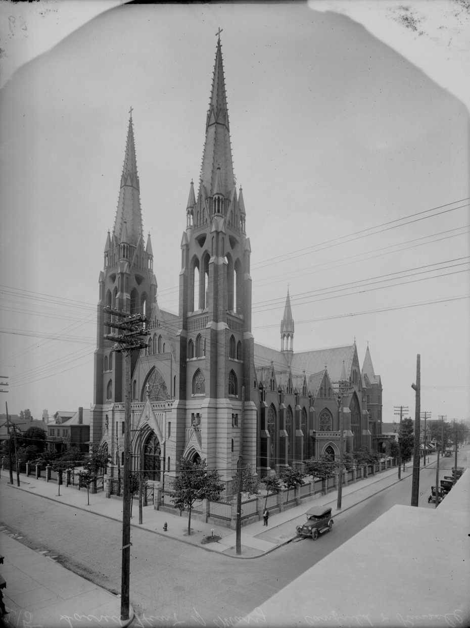 Favorite this☆ Sweetest Heart of Mary Church Description: Sweetest Heart of Mary Church on Russell at Canfield, designed by Spier and Rohns, built in 1893, with a view of the street. Recorded in glass negative ledger: "D/Churches-R.C.-Sweetest Heart of Mary." Details Resource ID: EB02f203 Subject: Sweetest Heart of Mary Church (Detroit, Mich.) Catholic church buildings--Michigan--Detroit Streets--Michigan--Detroit Glass negatives Date Issued: Unknown year Format: 1 negative : glass ; 8.25 x 6.25 in. Member of: Burton Historical Collection Negative Number: BHC glass neg. no. 2934 Rights: Physical rights are retained by DPL. Copyright is retained in accordance with U.S. copyright laws.