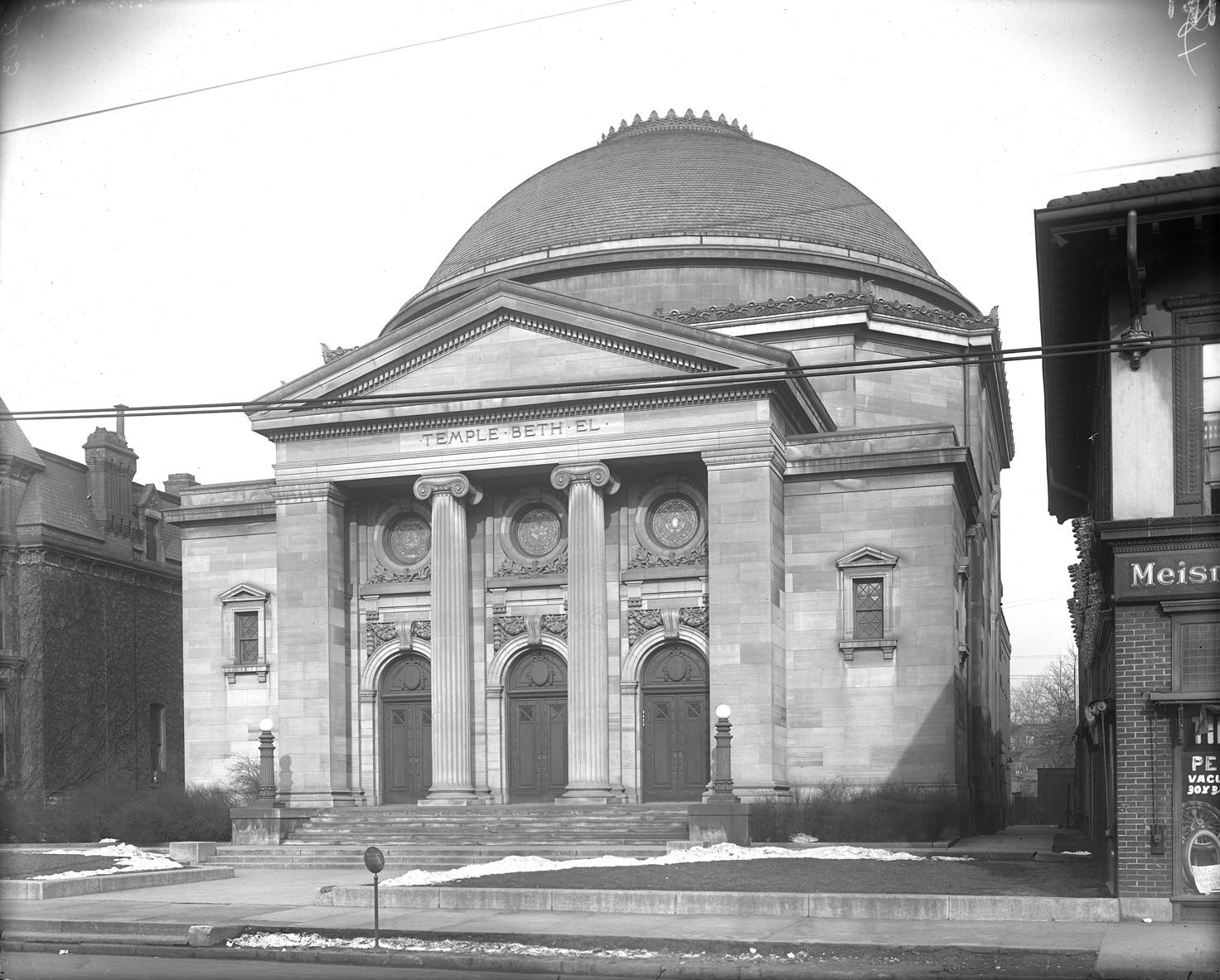 Favorite this☆ Temple Beth El on Woodward Avenue Description: View of Temple Beth El, a Greek Revival style building, on Woodward Avenue near Eliot. Recorded in glass negative ledger: "D/Synagogues-Temple Beth El." Details Resource ID: EB02f214 Subject: Temple Beth El (Detroit, Mich.) Synagogues--Michigan--Detroit Greek revival (Architecture)--Michigan--Detroit Glass negatives Date Issued: Unknown year Format: 1 negative : glass ; 8 x 10 in. Member of: Burton Historical Collection Negative Number: BHC glass neg. no. 2945 Rights: Physical rights are retained by DPL. Copyright is retained in accordance with U.S. copyright laws.