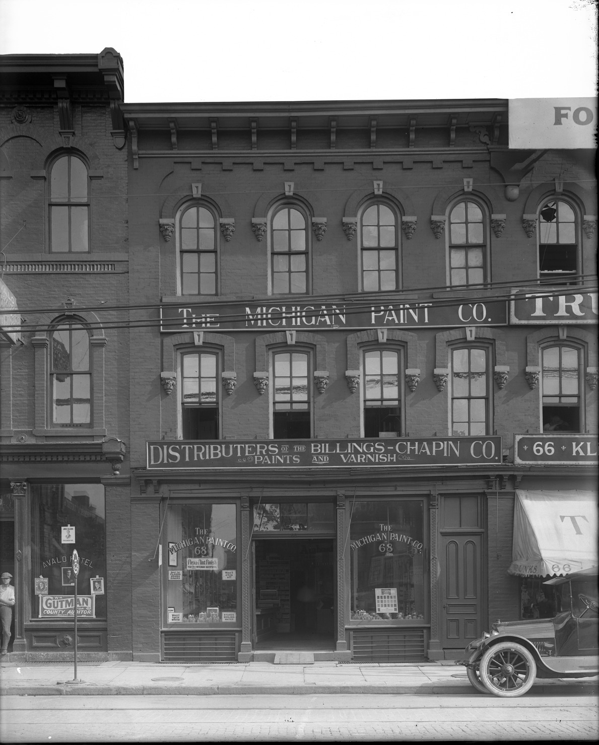 Favorite this☆ Michigan Paint Company Description: Michigan Paint Co. and the Avalo Hotel on unidentified street. Recorded in glass negative ledger: "D/Industries & business houses-Michigan paint co." Details Resource ID: EB02f250 Subject: Paint industry and trade--Michigan--Detroit Hotels--Michigan--Detroit Glass negatives Date Issued: Unknown year Format: 1 negative : glass ; 10 x 8 in. Member of: Burton Historical Collection Negative Number: BHC glass neg. no. 2997 Rights: Physical rights are retained by DPL. Copyright is retained in accordance with U.S. copyright laws.