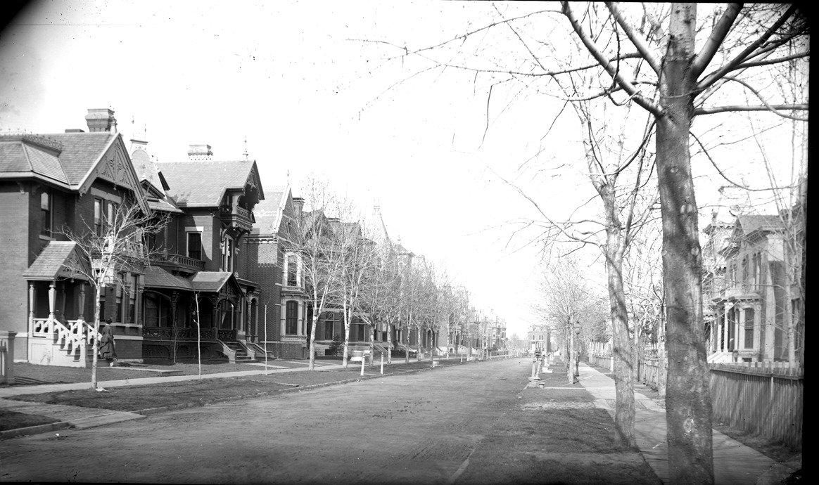 Favorite this☆ Houses Description: View along unpaved residential street, with close-packed houses. Scattered hitching posts and mounting blocks. Woman on steps of near house, facing away, in dress with bustle. Recorded in glass negative ledger: "D/Streets." Details Resource ID: EB02f408 Subject: Dwellings--Michigan--Detroit Streets--Michigan--Detroit Glass negatives Date Issued: Unknown year Format: 1 negative : glass ; 5 x 8 in. Member of: Burton Historical Collection Negative Number: BHC glass neg. no. 3225 Rights: Physical rights are retained by DPL. Copyright is retained in accordance with U.S. copyright laws.
