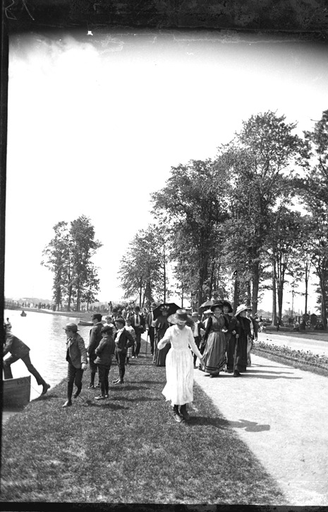 Favorite this☆ People walking along canal at Belle Isle Park Description: Groups of people walking along path beside canal on Belle Isle. Boys on bank getting into boat. Recorded in glass negative ledger: "D/Parks-Belle Isle." Emulsion damage on top and bottom edges. Details Resource ID: EB02f510 Subject: Belle Isle Park (Detroit, Mich.) Canals--Michigan--Detroit Glass negatives Date Issued: Unknown year Format: 1 negative : glass ; 5 x 3 in. Member of: Burton Historical Collection Negative Number: BHC glass neg. no. 3395 Rights: Physical rights are retained by DPL. Copyright is retained in accordance with U.S. copyright laws.