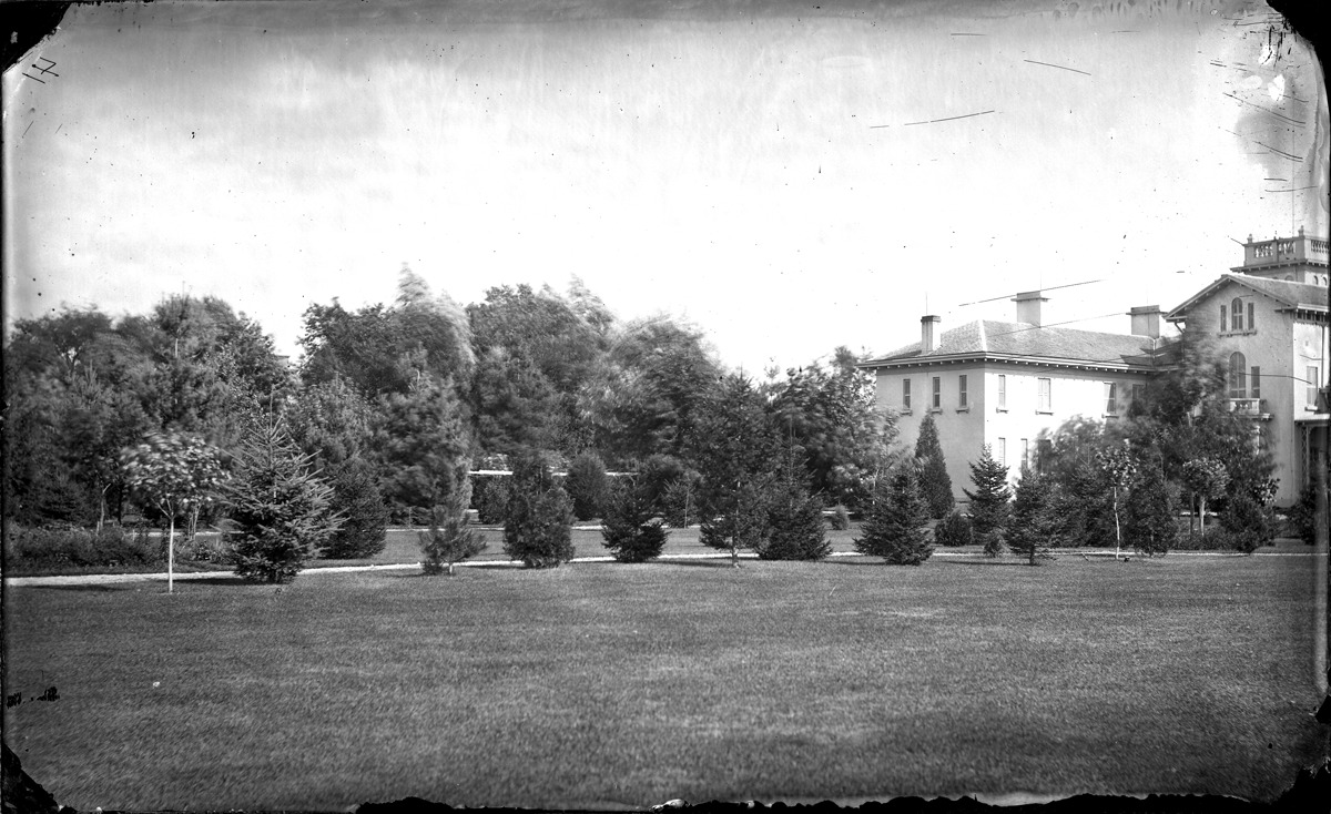 Favorite this☆ House of Daniel Scotten Description: Back view of wings of Italianate house with square tower on front, arched windows. Written on negative (reversed in scan): "41." Recorded in glass negative ledger: "D/Historic houses-Scotten, Daniel." Emulsion flaking at edges; scattered scratches. Details Resource ID: EB02f516 Subject: Dwellings--Michigan--Detroit Glass negatives Date Issued: Unknown year Format: 1 negative : glass ; 5 x 8 in. Member of: Burton Historical Collection Negative Number: BHC glass neg. no. 3402 Rights: Physical rights are retained by DPL. Copyright is retained in accordance with U.S. copyright laws.