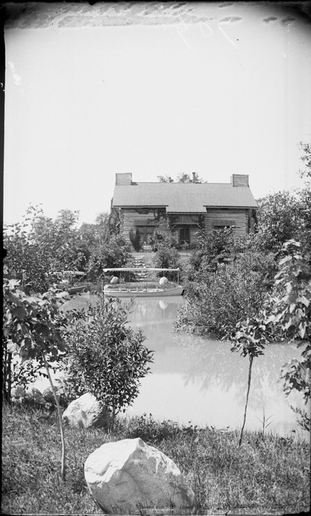 Favorite this☆ Log cabin viewed across pond in Palmer park Description: View across pond to Thomas Palmer's cabin in Palmer Park. Boat with awning tied up to dock. Recorded in glass negative ledger: "D/Parks-Palmer." Emulsion flaking on side and bottom edge; damaged across top edge. Details Resource ID: EB02f547 Subject: Parks--Michigan--Detroit Log cabins--Michigan--Detroit Ponds--Michigan--Detroit Palmer Park (Detroit, Mich.) Glass negatives Date Issued: Unknown year Format: 1 negative : glass ; 5 x 3 in. Member of: Burton Historical Collection Negative Number: BHC glass neg. no. 3455 Rights: Physical rights are retained by DPL. Copyright is retained in accordance with U.S. copyright laws.