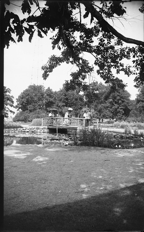 Favorite this☆ People walking across wooden bridge at Belle Isle Description: View across lawn and lily pond to group of people on rustic log bridge. Written on image in reverse: "Aug. 1898." Recorded in glass negative ledger: "D/Parks-Belle Isle-Bridges." Emulsion slightly damaged and flaking on edges. Details Resource ID: EB02f655 Subject: Belle Isle Park (Detroit, Mich.) Wooden bridges--Michigan--Detroit Ponds--Michigan--Detroit Glass negatives Date Issued: 1898-08 Format: 1 negative : glass ; 5 x 3 in. Member of: Burton Historical Collection Negative Number: BHC glass neg. no. 3563 Rights: Physical rights are retained by DPL. Copyright is retained in accordance with U.S. copyright laws.