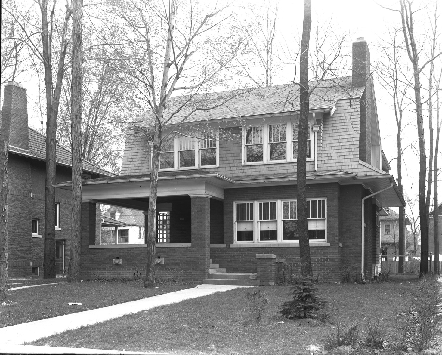 Favorite this☆ Unidentified house Description: View of Colonial revival two-story brick house with porch and gambrel roof. Recorded in glass negative ledger: "D/Historic houses." Details Resource ID: EB02g041 Subject: Brick houses--Michigan--Detroit Colonial revival (Architecture)--Michigan--Detroit Glass negatives Date Issued: Unknown year Format: 1 negative : glass ; 8 x 10 in. Member of: Burton Historical Collection Negative Number: BHC glass neg. no. 4158 Rights: Physical rights are retained by DPL. Copyright is retained in accordance with U.S. copyright laws.