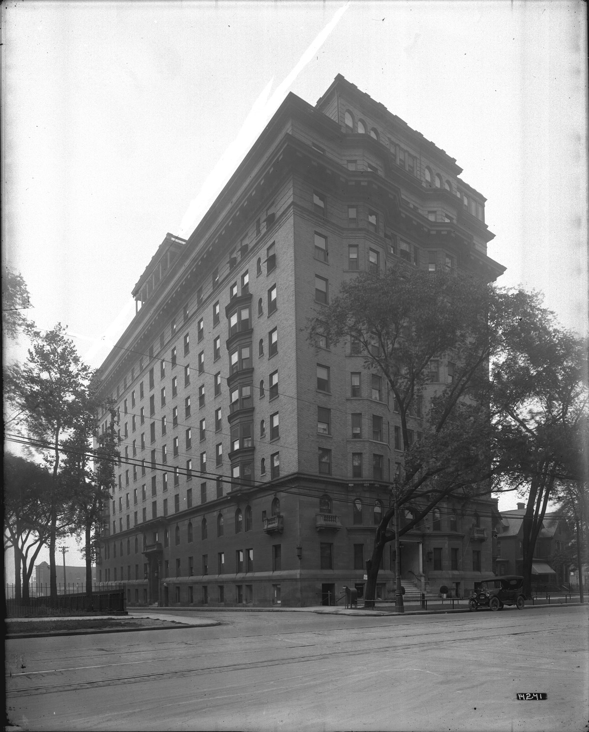 Favorite this☆ Pasadena Apartment Hotel Description: View of multistory brick apartment building; bay windows; automobile parked in street in front of building. Recorded in glass negative ledger: "D/Apartment houses-Pasadena." Details Resource ID: EB02g072 Subject: Apartment houses--Michigan--Detroit Glass negatives Date Issued: Unknown year Format: 1 negative : glass ; 10 x 8 in. Member of: Burton Historical Collection Negative Number: BHC glass neg. no. 4198 Rights: Physical rights are retained by DPL. Copyright is retained in accordance with U.S. copyright laws.