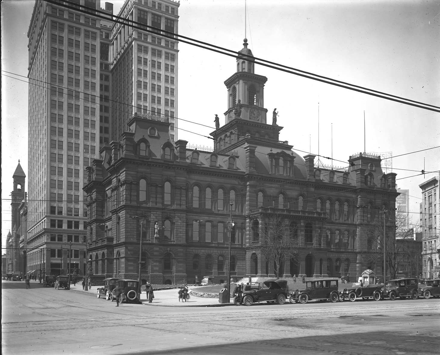 Favorite this☆ Detroit City Hall Description: View of Detroit City Hall; stone building designed by James Anderson; building has mansard roof, rounded arch windows and cupola with clock; automobiles parked in front of building. Recorded in glass negative ledger: "D/Buildings-City Hall, 1871-." Details Resource ID: EB02g328 Subject: City halls--Michigan--Detroit Glass negatives Date Issued: Unknown year Format: 1 negative : glass ; 8 x 9.75 in. Member of: Burton Historical Collection Negative Number: BHC glass neg. no. 4529 Rights: Physical rights are retained by DPL. Copyright is retained in accordance with U.S. copyright laws.