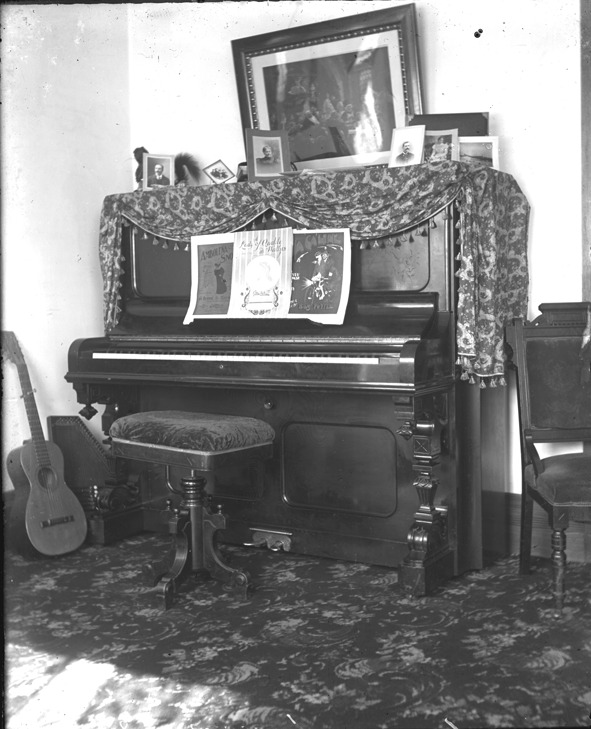 Favorite this☆ Piano Description: View of piano draped with fringed cloth; sheet music on stand; framed painting on wall over piano; guitar on floor leans against the wall. Recorded in glass negative ledger: "D/Interior decoration." Details Resource ID: EB02g518 Subject: Piano--Michigan--Detroit Glass negatives Date Issued: Unknown year Format: 1 negative : glass ; 5 x 4 in. Member of: Burton Historical Collection Negative Number: BHC glass neg. no. 4846 Rights: Physical rights are retained by DPL. Copyright is retained in accordance with U.S. copyright laws.