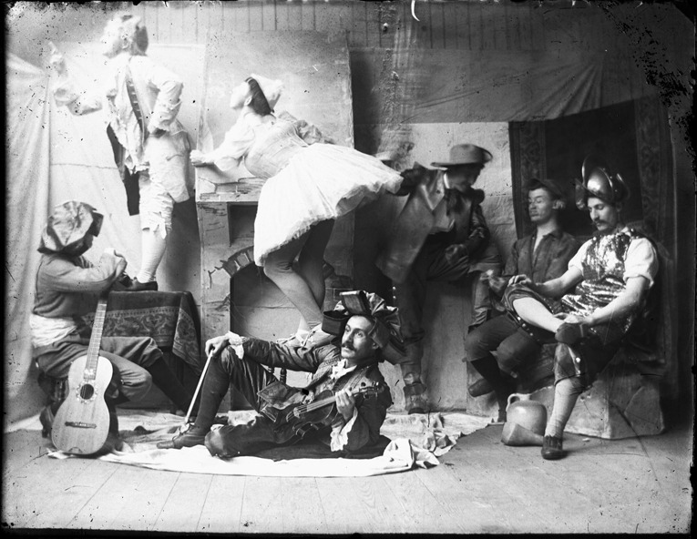 Favorite this☆ Scene from a play Description: View of men acting in a scene from a play; some actors dressed in costume of troubadour, conquistador and ballet dancer. Recorded in glass negative ledger: "D/Schools-Detroit School of Fine Arts." Details Resource ID: EB02g568 Subject: Actors--Michigan--Detroit Costume--Michigan--Detroit College and school drama, American--Michigan--Detroit Glass negatives Date Issued: Unknown year Format: 1 negative : glass ; 4 x 5 in. Member of: Burton Historical Collection Negative Number: BHC glass neg. no. 4906 Rights: Physical rights are retained by DPL. Copyright is retained in accordance with U.S. copyright laws.