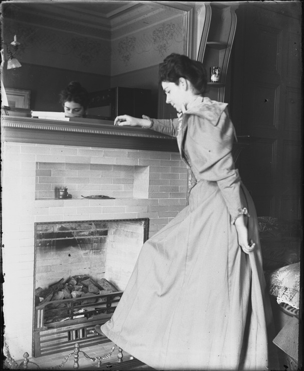 Favorite this☆ Portrait of woman Description: Woman wearing long dress with puffed sleeves poses in front of brick fireplace; woman looks down at fireplace; mirror over mantel. Recorded in glass negative ledger: "D/Schools-Detroit School of Fine Arts." Details Resource ID: EB02g578 Subject: Women--Michigan--Detroit Fireplaces--Michigan--Detroit Glass negatives Date Issued: Unknown year Format: 1 negative : glass ; 5 x 4 in. Member of: Burton Historical Collection Negative Number: BHC glass neg. no. 4916 Rights: Physical rights are retained by DPL. Copyright is retained in accordance with U.S. copyright laws.