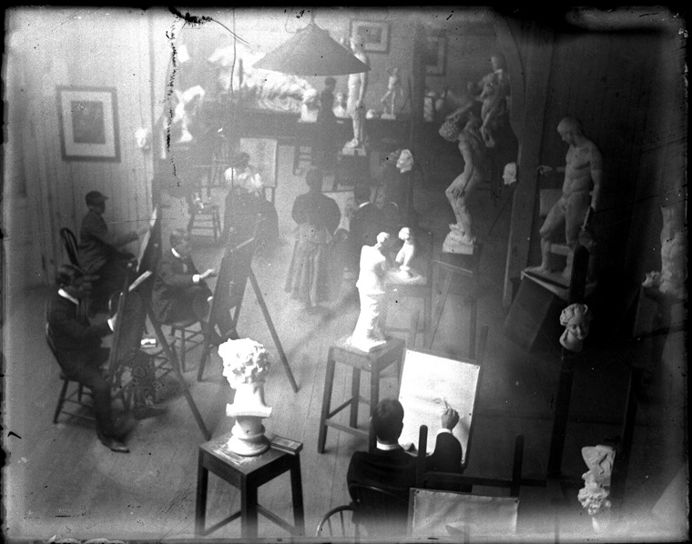 Favorite this☆ Art students sketching Description: Bird's-eye view of art students sketching at easels in classroom; reproductions of sculpture on pedestals. Recorded in glass negative ledger: "D/Exhibitions-Art." Details Resource ID: EB02g650 Subject: Art students--Michigan--Detroit Art schools--Michigan--Detroit Glass negatives Date Issued: Unknown year Format: 1 negative : glass ; 4 x 5 in. Member of: Burton Historical Collection Negative Number: BHC glass neg. no. 4991 Rights: Physical rights are retained by DPL. Copyright is retained in accordance with U.S. copyright laws.