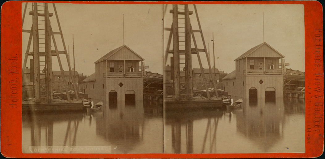 Favorite this☆ Centennial Boathouse Description: Orange mount. Boathouse at the Centennial Boat Club, man in boat next to dock. Printed on front: "Detroit, Mich., for Deans, Brow & Godfrey, J.A. Jenney Publisher." Handwritten on back: "Centennial Boat House." Details Resource ID: EB02h022 Creator: Deans, Brow & Godfrey Subject: Boathouses--Michigan--Detroit Photographers--Michigan--Detroit Stereographs Publisher: J.A. Jenney Date Issued: Unknown year Format: 1 photoprint on stereocard ; 3.5 x 7 in. Member of: Burton Historical Collection Filing Location: D/Organizations-Centennial Boat Club Note (Content): Slias Farmer Collection Rights: Physical rights are retained by DPL. Copyright is retained in accordance with U.S. copyright laws.