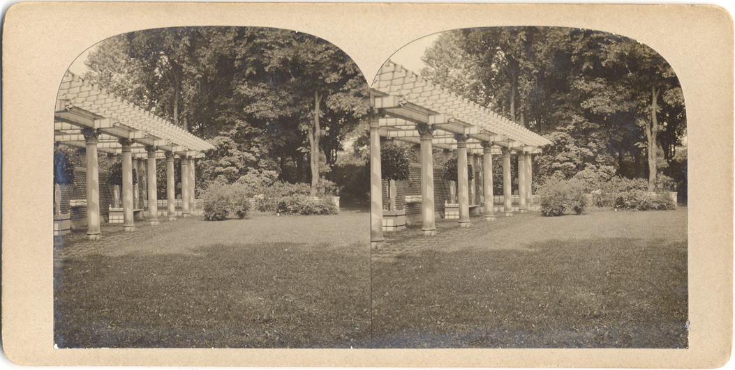 Favorite this☆ Newberry estate and garden Description: Gray mount. Dome topped. View of pergola (shaded walk of pillars) along brick wall on the Newberry estate in front of the garden. Details Resource ID: EB02m155 Subject: Pergolas--Michigan--Grosse Pointe Newberry, Truman Handy, 1864-1945--Homes and haunts--Michigan--Grosse Pointe Gardens--Michigan--Grosse Pointe Stereographs Date Issued: Unknown year Format: 1 photoprint on stereocard ; 3.5 x 7 in. Member of: Burton Historical Collection Filing Location: M/Gardens-Newberry, Truman H. Rights: Physical rights are retained by DPL. Copyright is retained in accordance with U.S. copyright laws.