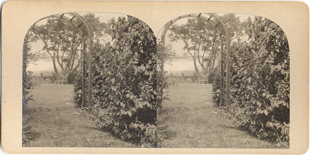 Favorite this☆ Wooden bench and trellis in garden Description: Gray mount. Dome topped. View through trellis of wooden bench in front of tree with shrubs on right and greenhouse in background. Details Resource ID: EB02m161 Subject: Gardens--Michigan--Grosse Pointe Garden ornaments and furniture--Michigan--Grosse Pointe Greenhouses--Michigan--Grosse Pointe Newberry, Truman Handy, 1864-1945--Homes and haunts--Michigan--Grosse Pointe Stereographs Date Issued: Unknown year Format: 1 photoprint on stereocard ; 3.5 x 7 in. Member of: Burton Historical Collection Filing Location: M/Gardens-Newberry, Truman H. Rights: Physical rights are retained by DPL. Copyright is retained in accordance with U.S. copyright laws.
