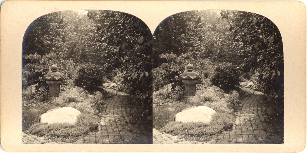 Favorite this☆ Garden path on Newberry estate Description: Gray mount. Dome topped. View of oriental style garden ornament at a fork in the garden path with shrubs and trees in background. Details Resource ID: EB02m181 Subject: Garden walks--Michigan--Grosse Pointe Garden ornaments and furniture--Michigan--Grosse Pointe Newberry, Truman Handy, 1864-1945--Homes and haunts--Michigan--Grosse Pointe Stereographs Date Issued: Unknown year Format: 1 photoprint on stereocard ; 3.5 x 7 in. Member of: Burton Historical Collection Filing Location: M/Gardens-Newberry, Truman H. Rights: Physical rights are retained by DPL. Copyright is retained in accordance with U.S. copyright laws.