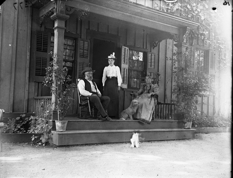 Favorite this☆ Family portrait on porch Description: Portrait of an unidentified family on the porch of a two story wood frame house in Michigan. Recorded in glass negative ledger: "M/Localities-Grosse Pointe, group of people, Jex Bardwell on porch." Details Resource ID: EB02m493 Subject: Portraits, Group--Michigan--Grosse Pointe Porches--Michigan--Grosse Pointe Wooden-frame houses--Michigan--Grosse Pointe Glass negatives Date Issued: Unknown year Format: 1 negative : glass ; 3.75 x 5 in. Member of: Burton Historical Collection Negative Number: BHC glass neg. no. 388 Rights: Physical rights are retained by DPL. Copyright is retained in accordance with U.S. copyright laws.