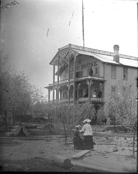 Favorite this☆ Star Island House Description: Two women stand in front of the Star Island House, a three story wood frame hotel with porches at each story, in St. Clair, Michigan. Recorded in glass negative ledger: "M/Localities-St. Clair Flats." Details Resource ID: EB02m558 Subject: Hotels--Michigan--Saint Clair Glass negatives Date Issued: Unknown year Format: 1 negative : glass ; 4.75 x 3.75 in. Member of: Burton Historical Collection Negative Number: BHC glass neg. no. 578 Rights: Physical rights are retained by DPL. Copyright is retained in accordance with U.S. copyright laws.