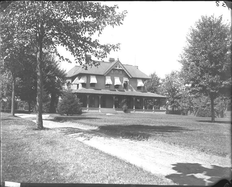 Favorite this☆ Queen Anne style house in Grosse Pointe, Michigan Description: View of a wood frame, Queen Anne style home with a large porch in Grosse Pointe, Michigan, with a view of the grounds. Recorded in glass negative ledger: "M/Localities-Grosse Pointe-Historic houses." Details Resource ID: EB02m602 Subject: Architecture, Queen Anne--Michigan--Grosse Pointe Wooden-frame houses--Michigan--Grosse Pointe Porches--Michigan--Grosse Pointe Glass negatives Date Issued: Unknown year Format: 1 negative : glass ; 4 x 5 in. Member of: Burton Historical Collection Negative Number: BHC glass neg. no. 943 Rights: Physical rights are retained by DPL. Copyright is retained in accordance with U.S. copyright laws.