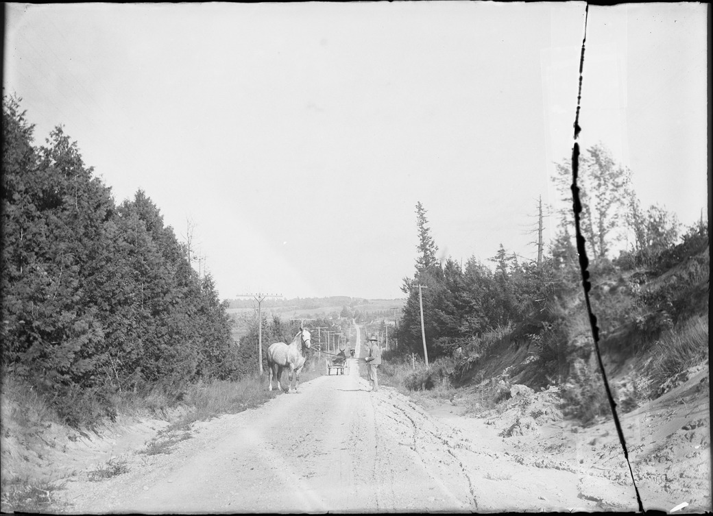 Favorite this☆ Man with horse on dirt road Description: Man standing on side of rural road holding reins of horse, horse-drawn wagons in distance. Recorded in glass negative ledger: "LM/Roads." Negative cracked on right side Details Resource ID: EB02m643 Subject: Rural roads--Michigan Horses--Michigan Glass negatives Date Issued: Unknown year Format: 1 negative : glass ; 5 x 6.5 in. Member of: Burton Historical Collection Negative Number: BHC glass neg. no. 1930 Rights: Physical rights are retained by DPL. Copyright is retained in accordance with U.S. copyright laws.