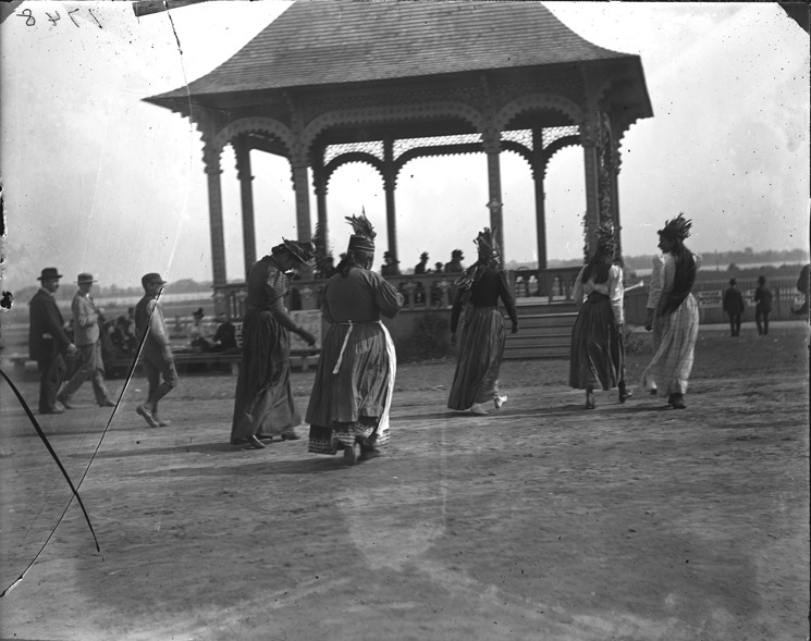 Favorite this☆ Women near gazebo at Michigan State Fair Description: Five women wearing feathered headdresses, walk toward gazebo at the Michigan State Fair. Recorded in glass negative ledger: "LM/State fair." Glass negative is cracked at left. Details Resource ID: EB02m708 Subject: Michigan State Fair Women--Michigan--Detroit Gazebos--Michigan--Detroit Glass negatives Date Issued: Unknown year Format: 1 negative : glass ; 4 x 5 in. Member of: Burton Historical Collection Negative Number: BHC glass neg. no. 2472 Rights: Physical rights are retained by DPL. Copyright is retained in accordance with U.S. copyright laws.