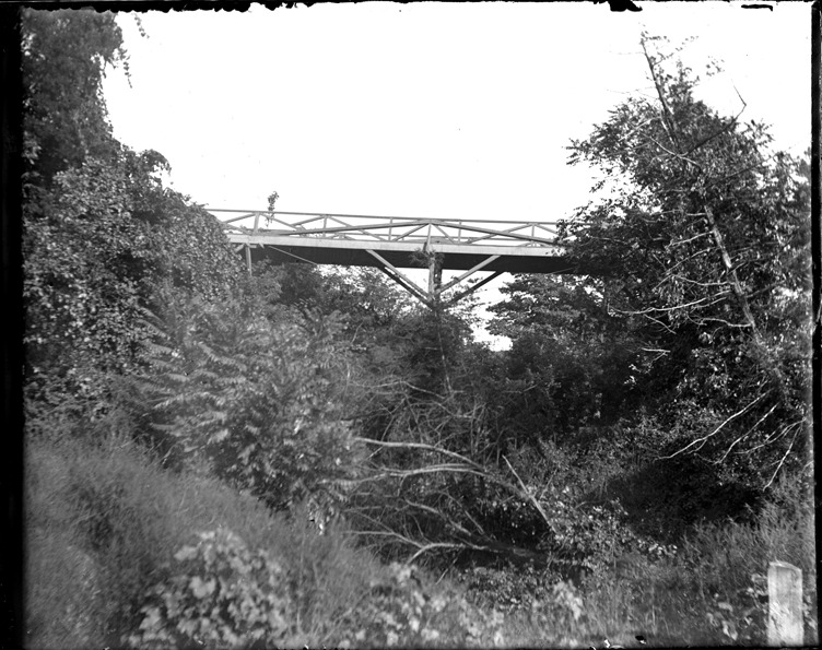 Favorite this☆ Bridge Description: View of wooden bridge over ravine; trees, shrubs and grasses cover ground below. Recorded in glass negative ledger: "M/Localities-St. Joseph-Bridge in park, 1897." Details Resource ID: EB02m879 Subject: Wooden bridges--Michigan--Saint Joseph Ravines--Michigan--Saint Joseph Glass negatives Date Issued: 1897 Format: 1 negative : glass ; 4 x 5 in. Member of: Burton Historical Collection Negative Number: BHC glass neg. no. 3777 Rights: Physical rights are retained by DPL. Copyright is retained in accordance with U.S. copyright laws.
