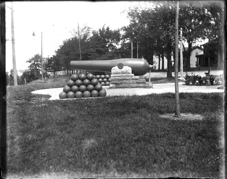 Favorite this☆ Cannon in Lake Front Park, Saint Joseph, Michigan Description: View of cannon and cannonballs in Lake Front Park; houses in background. Recorded in glass negative ledger: "M/Localities-St. Joseph-Gun, '97." Details Resource ID: EB02m881 Subject: Ordnance--Michigan--Saint Joseph Parks--Michigan--Saint Joseph Glass negatives Date Issued: 1897 Format: 1 negative : glass ; 4 x 5 in. Member of: Burton Historical Collection Negative Number: BHC glass neg. no. 3779 Rights: Physical rights are retained by DPL. Copyright is retained in accordance with U.S. copyright laws.