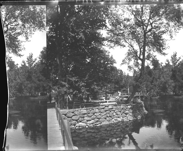 Favorite this☆ Man and woman crossing bridge Description: Man and woman cross wooden bridge over river near stone embankment; benches and bicycles near water. Recorded in glass negative ledger: "M/Localities-Grand Ledge, looking towards Island House, 9-3-99." Left section of negative is missing. Details Resource ID: EB02m961 Subject: Grand River (Mich.) Wooden bridges--Michigan Embankments--Michigan Stereographs Glass negatives Date Issued: 1899-09-03 Format: 1 negative : glass ; 3.5 x 4.25 in. Member of: Burton Historical Collection Negative Number: BHC glass neg. no. 3902 Rights: Physical rights are retained by DPL. Copyright is retained in accordance with U.S. copyright laws.