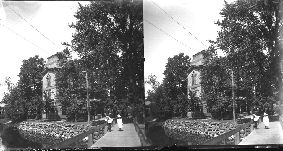 Favorite this☆ Island House hotel Description: Two children stand on bridge near house with cupola and mansard roof; house surrounded by trees; stone embankment. Recorded in glass negative ledger: "M/Localities-Grand Ledge, Island House, Sept. 3, 1899." Details Resource ID: EB02m971 Subject: Hotels--Michigan--Grand Ledge Islands--Michigan--Grand Ledge Wooden bridges--Michigan--Grand Ledge Stereographs Glass negatives Date Issued: 1899-09-03 Format: 1 negative : glass ; 3.5 x 6.5 in. Member of: Burton Historical Collection Negative Number: BHC glass neg. no. 3912 Rights: Physical rights are retained by DPL. Copyright is retained in accordance with U.S. copyright laws.