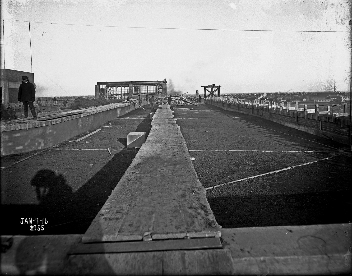 Favorite this☆ Roof of Dodge Brothers factory Description: View of roof under construction; man stands on planks. Printed on photograph: "Jan-7-16." Recorded in glass negative ledger: "D/Automobile industry & trade-Dodge Bros., Jan. 7, 1916." Details Resource ID: EB02m997 Subject: Dodge Brothers Roofs--Design and construction Automobile factories--Michigan--Detroit Glass negatives Date Issued: 1916-01-07 Format: 1 negative : glass ; 8 x 10 in. Member of: Burton Historical Collection Negative Number: BHC glass neg. no. 4016 Rights: Physical rights are retained by DPL. Copyright is retained in accordance with U.S. copyright laws.