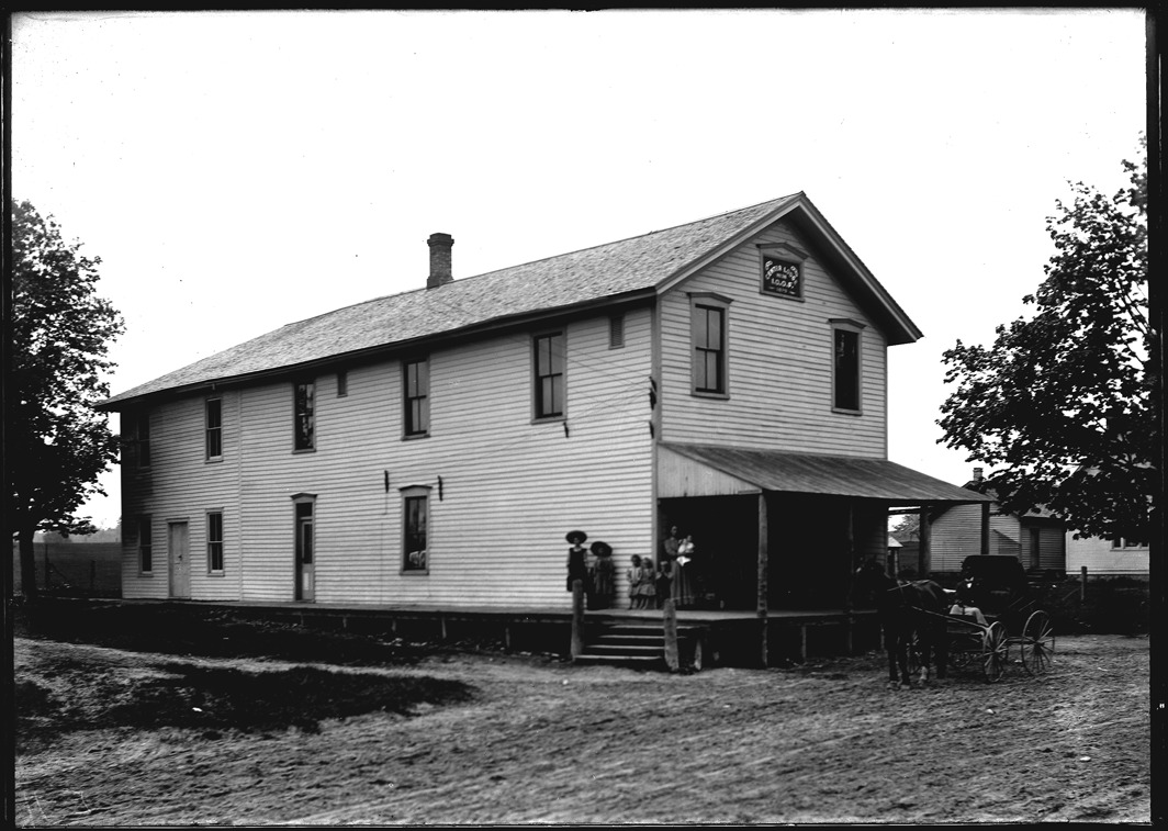 Favorite this☆ I.O.O.F. Center Lodge Description: Group of people stand on porch of a two story wood frame building with the words, "I.O.O.F. Center Lodge," across top, with horse-drawn vehicle parked out front. Recorded in glass negative ledger: "M/Organizations-Michigan State Grange." Details Resource ID: EB02n101 Subject: Wooden-frame buildings--Michigan Clubhouses--Michigan Independent Order of Odd Fellows Michigan State Grange Glass negatives Date Issued: Unknown year Format: 1 negative : glass ; 5 x 7 in. Member of: Burton Historical Collection Negative Number: BHC glass neg. no. 178 Rights: Physical rights are retained by DPL. Copyright is retained in accordance with U.S. copyright laws.