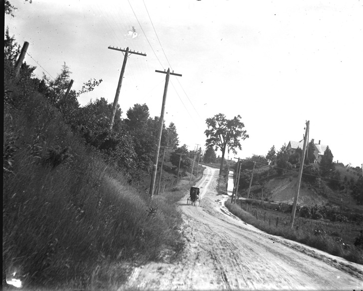 Favorite this☆ Dirt road near Greenville, Michigan Description: View of horse-drawn carriage on dirt road in rural area; house on steep hill. Recorded in glass negative ledger: "M/Roads-Country road probably near Greenville." Details Resource ID: EB02n174 Subject: Roads--Michigan--Greenville Horse-drawn vehicles--Michigan--Greenville Glass negatives Date Issued: Unknown year Format: 1 negative : glass ; 4 x 5 in. Member of: Burton Historical Collection Negative Number: BHC glass neg. no. 4740 Rights: Physical rights are retained by DPL. Copyright is retained in accordance with U.S. copyright laws.