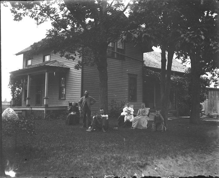 Favorite this☆ Farmhouse on Snyder farm Description: Group of men, women and children pose in front of wooden-frame house. Recorded in glass negative ledger: "M/Farms-Snyder family, farm home, exterior." Details Resource ID: EB02n178 Subject: Farmhouses--Michigan--Greenville Wooden-frame houses--Michigan--Greenville Rural families--Michigan--Greenville Snyder family Glass negatives Date Issued: Unknown year Format: 1 negative : glass ; 4 x 5 in. Member of: Burton Historical Collection Negative Number: BHC glass neg. no. 4744 Rights: Physical rights are retained by DPL. Copyright is retained in accordance with U.S. copyright laws.