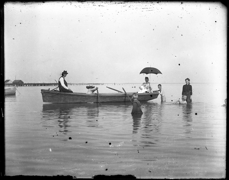 Favorite this☆ Boating near New Baltimore, Michigan Description: Family sits in rowboat; woman in boat holds a baby and sits under a parasol or umbrella; boys play in water; woman wearing long dress stands in water next to boat. Recorded in glass negative ledger: "M/Localities-New Baltimore." Details Resource ID: EB02n276 Subject: Boats and boating--Michigan--New Baltimore Swimmers--Michigan--New Baltimore Glass negatives Date Issued: Unknown year Format: 1 negative : glass ; 4 x 5 in. Member of: Burton Historical Collection Negative Number: BHC glass neg. no. 6011 Rights: Physical rights are retained by DPL. Copyright is retained in accordance with U.S. copyright laws.