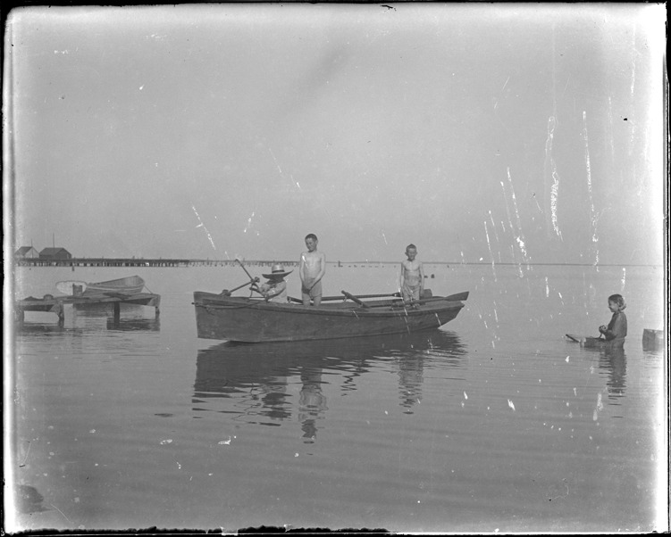 Favorite this☆ Children in a boat Description: Two boys wearing swim trunks stand in a rowboat; another boy wearing a large-brimmed hat holds an oar; girl sits on a plank in the water. Recorded in glass negative ledger: "M/Localities-New Baltimore." Details Resource ID: EB02n302 Subject: Boats and boating--Michigan--New Baltimore Glass negatives Date Issued: Unknown year Format: 1 negative : glass ; 4 x 5 in. Member of: Burton Historical Collection Negative Number: BHC glass neg. no. 6037 Rights: Physical rights are retained by DPL. Copyright is retained in accordance with U.S. copyright laws.