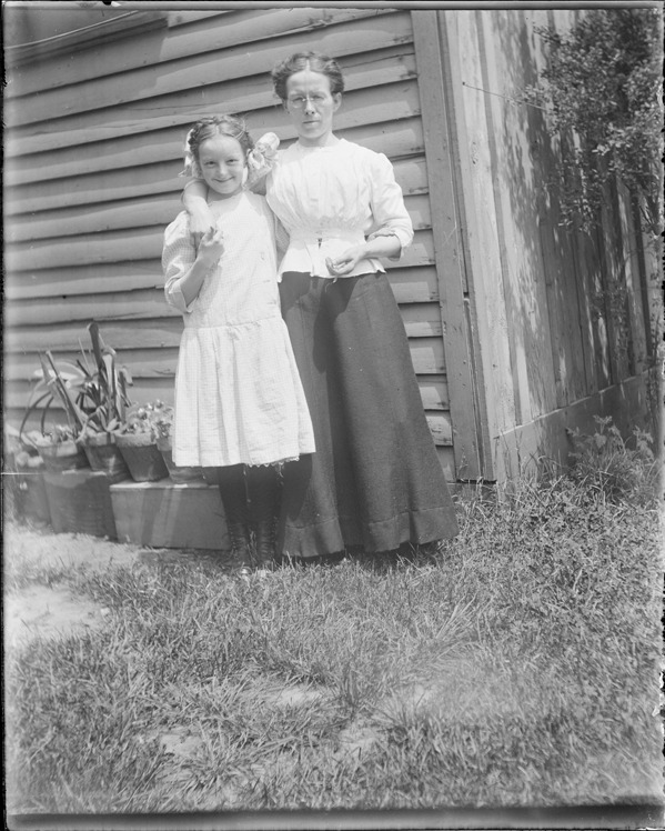Favorite this☆ Woman and girl in New Baltimore Description: Woman and girl pose outdoors in front of wooden-frame building; flower pots next to building. Recorded in glass negative ledger: "M/Localities-New Baltimore-Kuhn family." Details Resource ID: EB02n363 Subject: Women--Michigan--New Baltimore Girls--Michigan--New Baltimore Kuhn family Glass negatives Date Issued: Unknown year Format: 1 negative : glass ; 5 x 4 in. Member of: Burton Historical Collection Negative Number: BHC glass neg. no. 6098 Rights: Physical rights are retained by DPL. Copyright is retained in accordance with U.S. copyright laws.