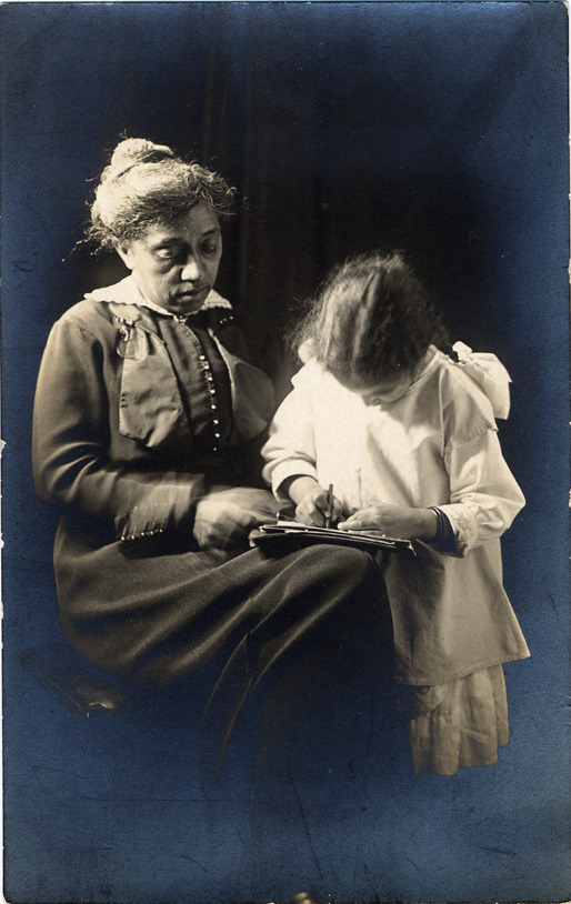 Favorite this☆ Cora Jackson and young girl Description: Postcard of Cora Jackson seated on a bench watching a young girl writing on papers held on her knee. Handwritten on back: "Aunt Cora Jackson, Mr. Jackson's sister." Details Resource ID: HCJ012 Creator: Jackson, Harvey C., 1876-1957 Subject: Jackson, Harvey C., 1876-1957--Family African Americans--Michigan--Detroit African American photographers--Michigan--Detroit Photographic postcard Date Issued: Unknown year Format: 1 postcard ; 5.5 x 3.5 in. Member of: Burton Historical Collection Harvey C. Jackson Collection Filing Location: D/Photography-Jackson, Harvey C. Rights: Physical rights are retained by DPL. Copyright is retained in accordance with U.S. copyright laws.