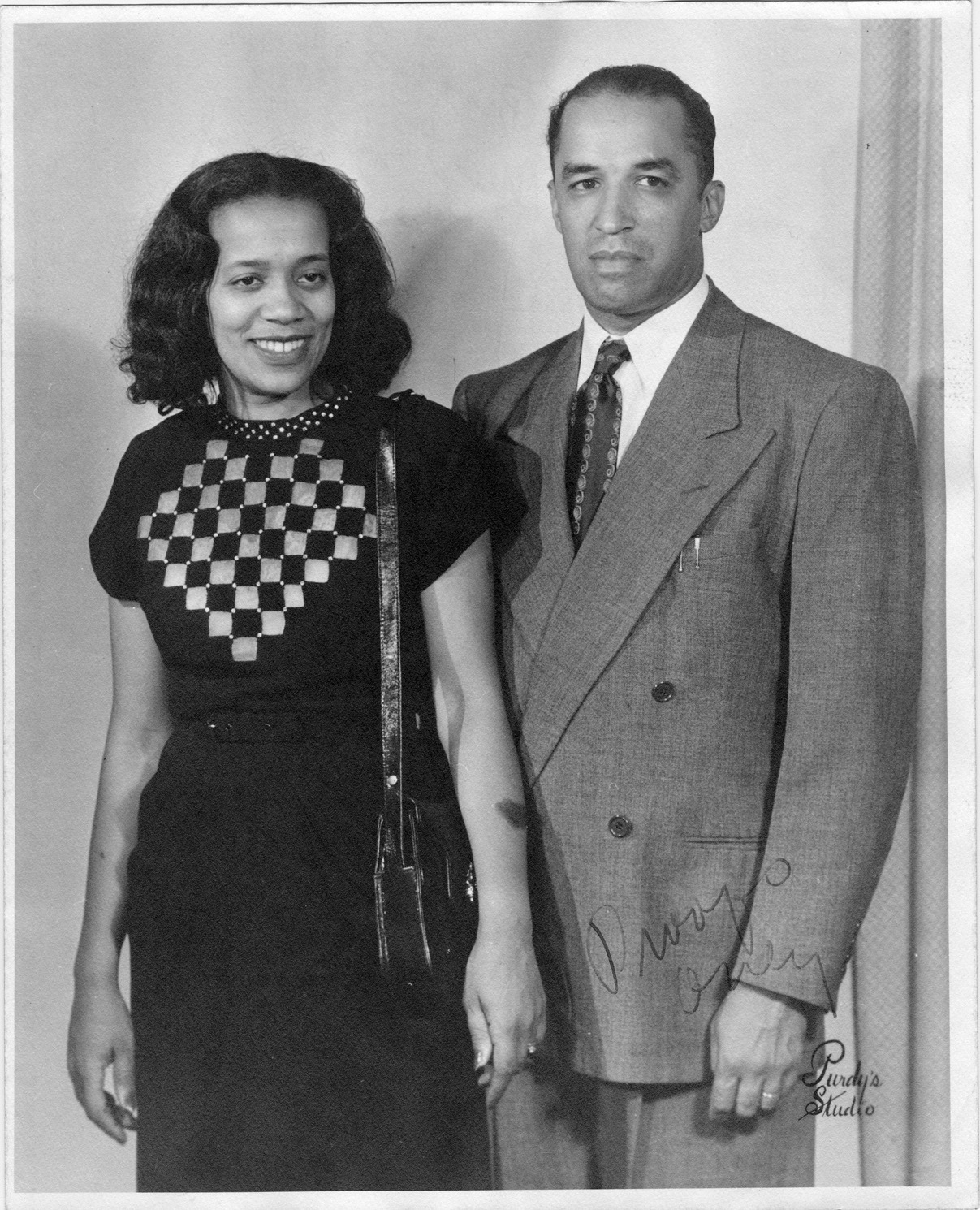 Favorite this☆ Harvey C. Jackson, Jr. and wife Dorothea Jackson Description: Harvey C. Jackson, Jr. and wife Dorothea Jackson. Handwritten on photo front: "Proofs only," printed on photo front: "Purdy's Studio." Details Resource ID: HCJ032 Creator: Purdy's Studio Jackson, Harvey C., 1876-1957 Subject: Jackson, Harvey C., 1907-1967 Jackson, Dorothea A. African Americans--Michigan--Detroit African American photographers--Michigan--Detroit Photographic prints Date Issued: Unknown year Format: 1 photographic print ; 10 x 8 in. Member of: Burton Historical Collection Harvey C. Jackson Collection Filing Location: D/Photography-Jackson, Harvey C. Rights: Physical rights are retained by DPL. Copyright is retained in accordance with U.S. copyright laws.