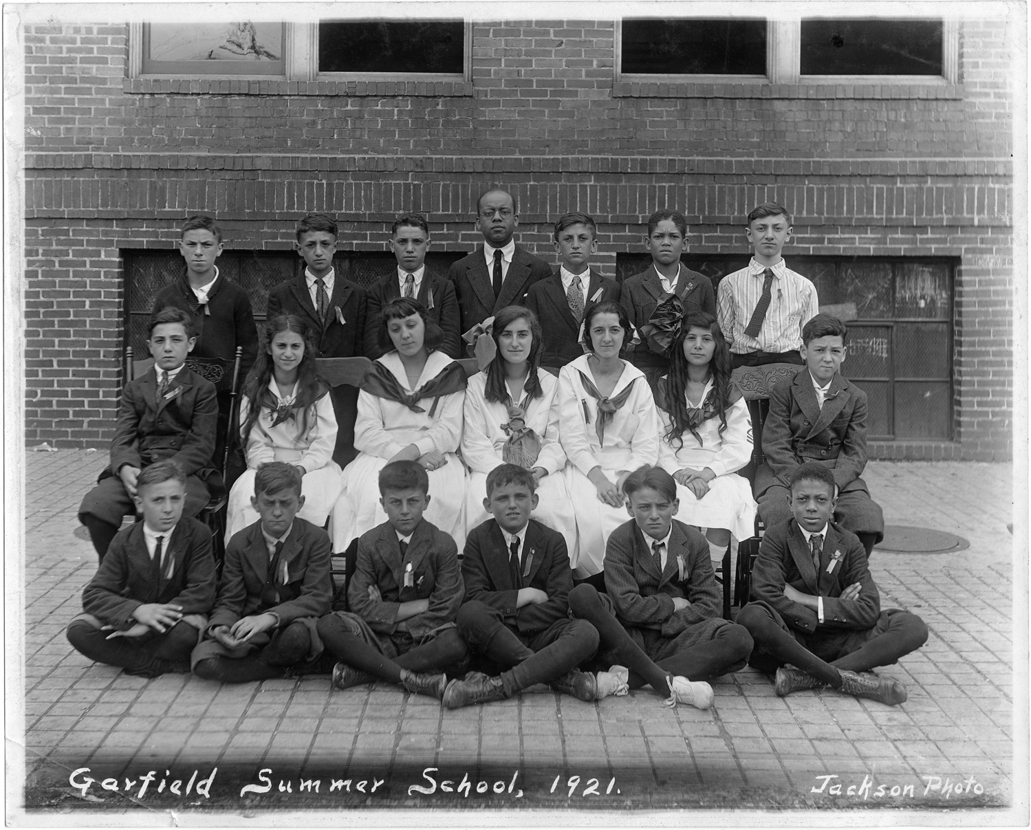 Favorite this☆ Garfield summer school 1921 class Description: Garfield summer school 1921 class, boys seated cross-legged on ground, other girls and boys seated in chairs or standing, teacher in last row, outside in front of brick building. Handwritten on front: "Garfield Summer School, 1921, Jackson Photo." Details Resource ID: HCJ080 Creator: Jackson, Harvey C., 1876-1957 Subject: Students--Michigan--Detroit African American students--Michigan--Detroit African American teachers--Michigan--Detroit Summer schools--Michigan--Detroit African American photographers--Michigan--Detroit Photographic prints Date Issued: 1921 Format: 1 photographic print ; 8 x 10 in. Member of: Burton Historical Collection Harvey C. Jackson Collection Filing Location: D/Photography-Jackson, Harvey C. Rights: Physical rights are retained by DPL. Copyright is retained in accordance with U.S. copyright laws.