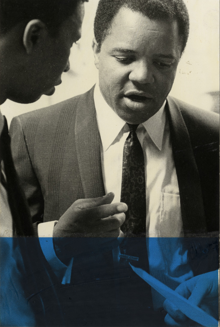 Favorite this☆ Berry Gordy Description: View of music producer Berry Gordy talking to an unidentified man. Handwritten on back: "B.G." Details Resource ID: hk000004 Subject: Gordy, Berry, 1929- African American sound recording executives and producers Photographic prints Date Issued: Unknown year Format: 1 photographic print mounted on stock ; 7.25 x 5 in. Member of: E. Azalia Hackley Collection Rights: Physical rights are retained by DPL. Copyright is retained in accordance with U.S. copyright laws.