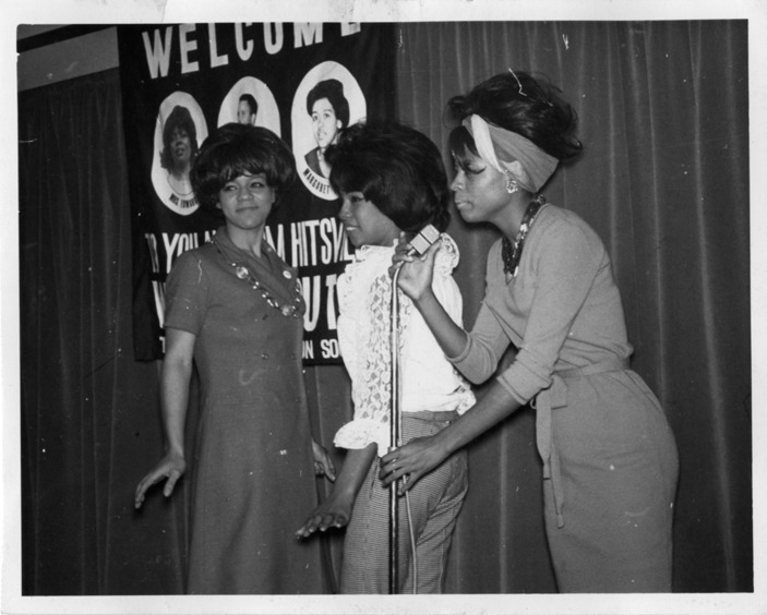 Favorite this☆ Supremes Description: View of Diana Ross, Florence Ballard and Mary Wilson of the Supremes standing on stage; Diana Ross holds microphone. Banner in background. Details Resource ID: hk000008 Subject: Supremes (Musical group) Ballard, Florence, 1943-1976 Ross, Diana, 1944- Wilson, Mary, 1944- Photographic prints Date Issued: Unknown year Format: 1 photographic print ; 3.75 x 4.75 in. Member of: E. Azalia Hackley Collection Rights: Physical rights are retained by DPL. Copyright is retained in accordance with U.S. copyright laws.