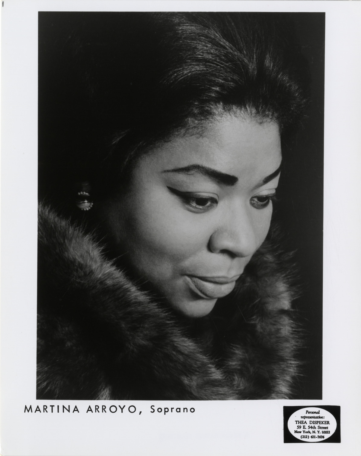 Favorite this☆ Martina Arroyo Description: Portrait of soprano Martina Arroyo. Printed on front: "Martina Arroyo, soprano. Personal representative: Thea Dispeker, 59 E. 54th Street, New York, N.Y. 10022, (212) 421-7676." Details Resource ID: hk000214 Subject: Arroyo, Martina African American women singers Photographic prints Date Issued: Unknown year Format: 1 photographic print ; 10 x 8 in. Member of: E. Azalia Hackley Collection Filing Location: Biography--Arroyo, Martina Rights: Physical rights are retained by DPL. Copyright is retained in accordance with U.S. copyright laws.
