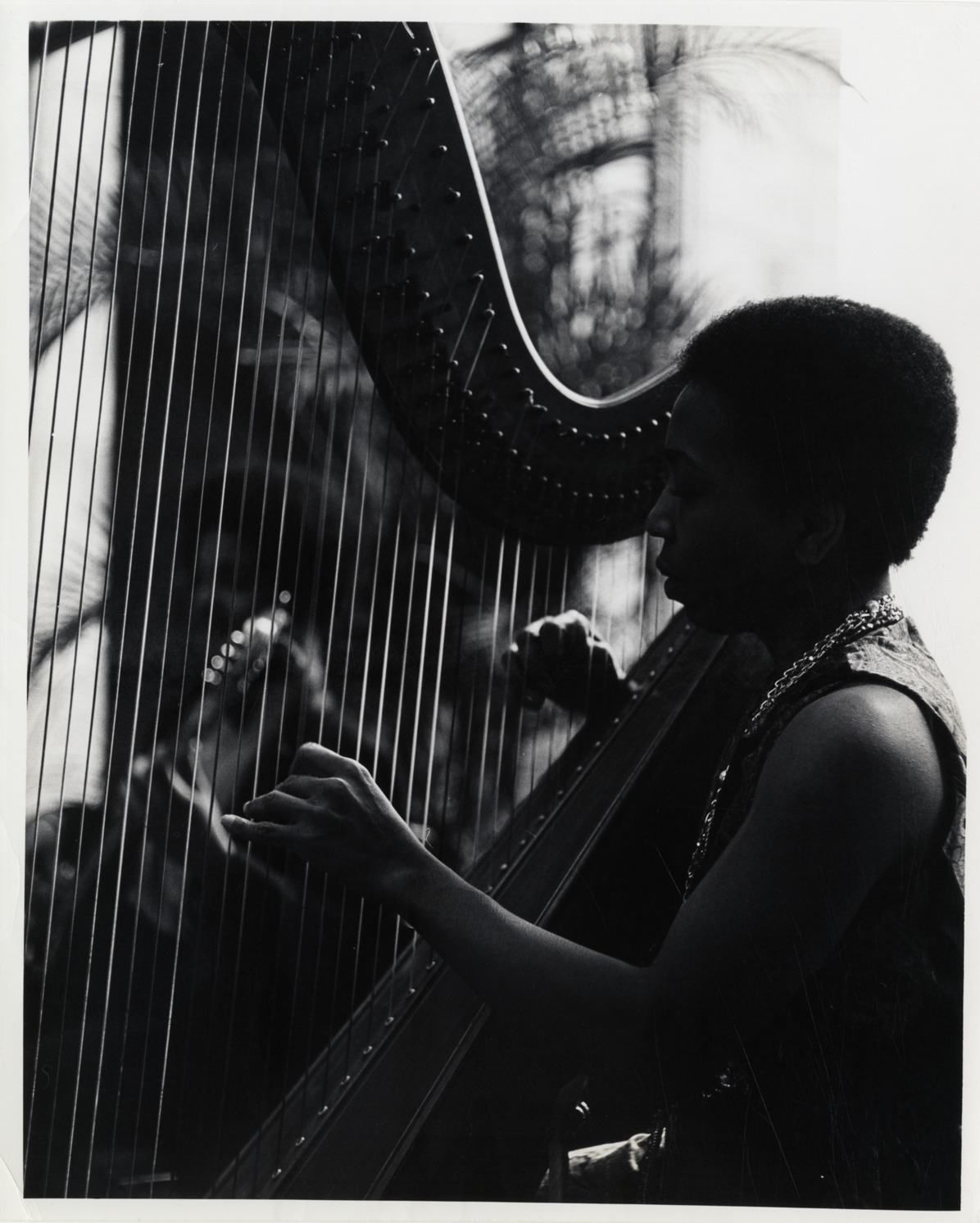 Favorite this☆ Dorothy Ashby Description: View of Dorothy Ashby playing harp at reception for American Institute of Architects. Handwritten on back: "Dorothy Ashby. Reception for Amer. Inst. of Architects, 6-20-71." Details Resource ID: hk000225 Subject: Ashby, Dorothy African American women musicians Harpists Harp Photographic prints Date Issued: 1971-06-20 Format: 1 photographic print ; 10 x 8 in. Member of: E. Azalia Hackley Collection Filing Location: Biography--Ashby, Dorothy Rights: Physical rights are retained by DPL. Copyright is retained in accordance with U.S. copyright laws.
